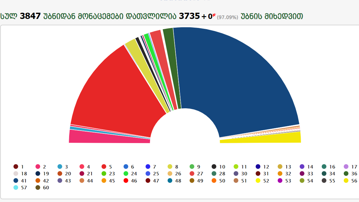 Gruziya Markaziy saylov komissiyasi joriy yilning 31 oktyabr kuni mamlakatda bo‘lib o‘tgan parlament saylovlari bo‘yicha dastlabki natijalarni e’lon qildi.