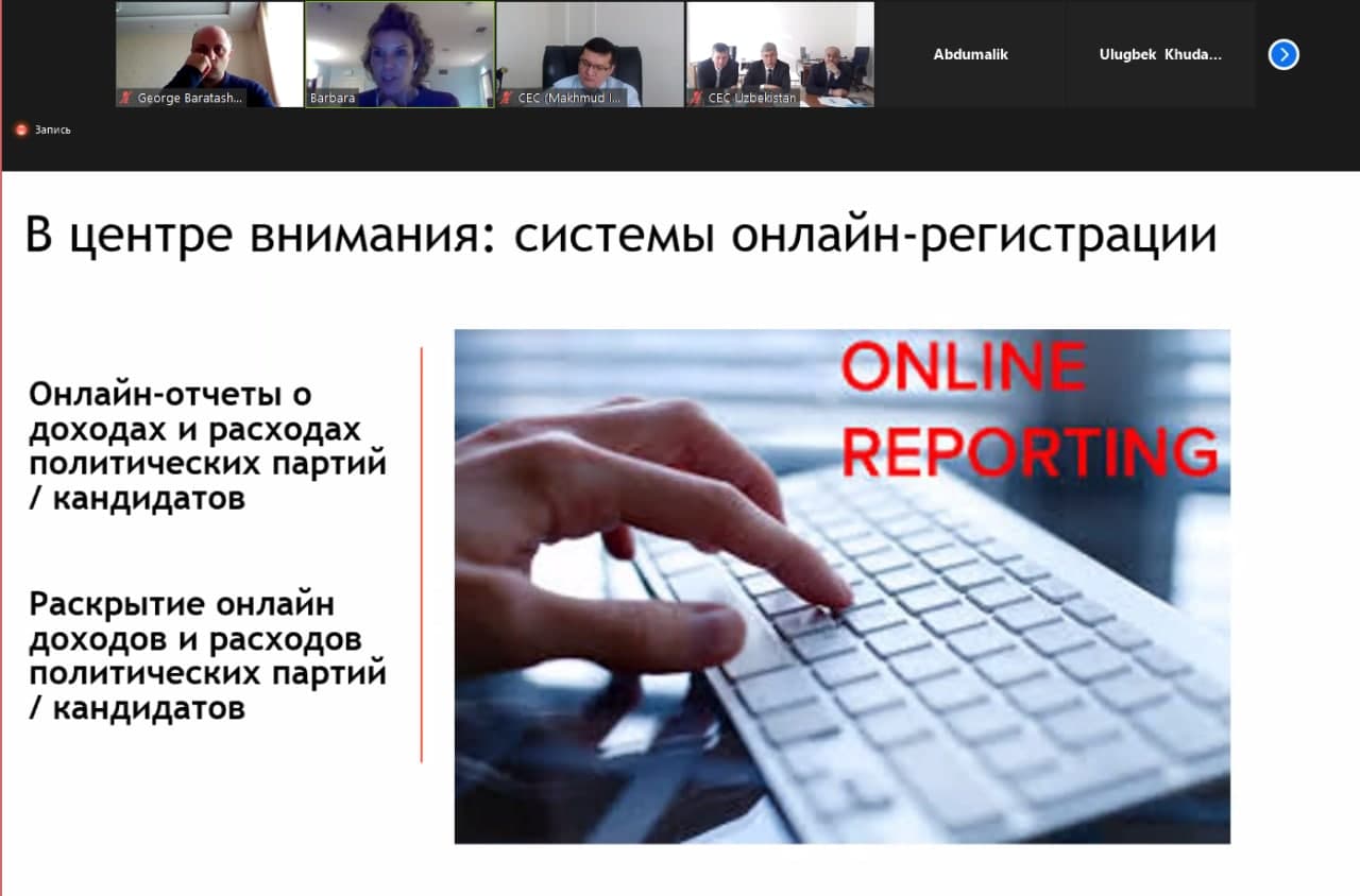 18 декабрь куни Марказий сайлов комиссияси, БМТнинг Тараққиёт дастури, билан ҳамкорликда ZOOM платформаси орқали ташкил этилган онлайн мухокамалар жараёнида Ўзбекистонда сайлов кампанияси ва сиёсий партияларни молиялаштириш, сиёсий молиялаштириш қоидалари, илғор халқаро тажриба, сайловларда маблағлар сарфланишининг шаффофлиги, сайлов харажатлари юзасидан ҳисобдорлик ва унга амал қилиш устидан назоратни ташкил этиш масалалари муҳокама этилди.