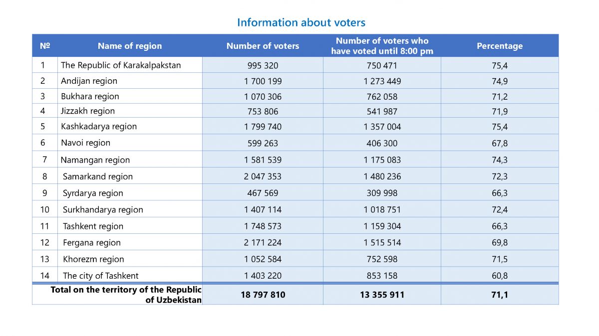 INFORMATION ABOUT VOTERS (updated 21:00)