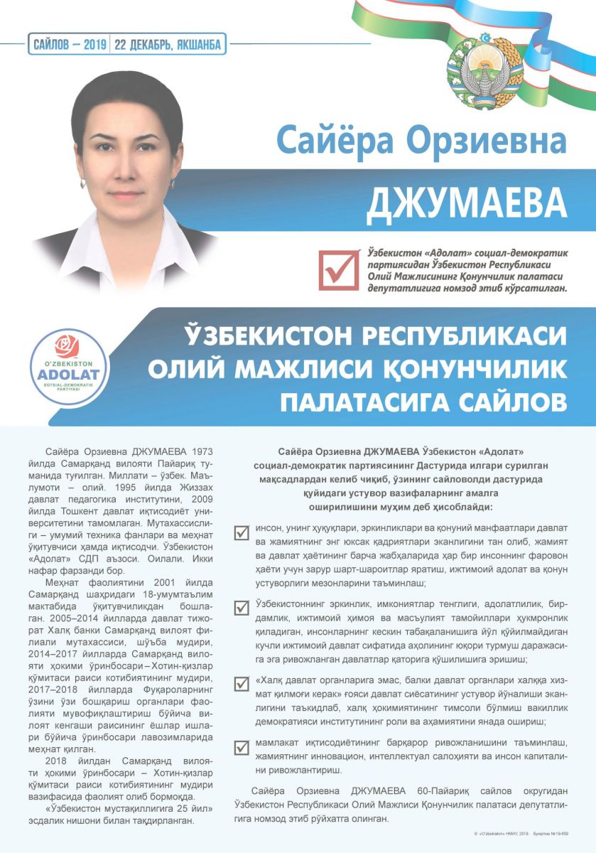 Жомбой тумани ҳокимининг ўринбосари – хотин-қизлар қўмитаси раиси