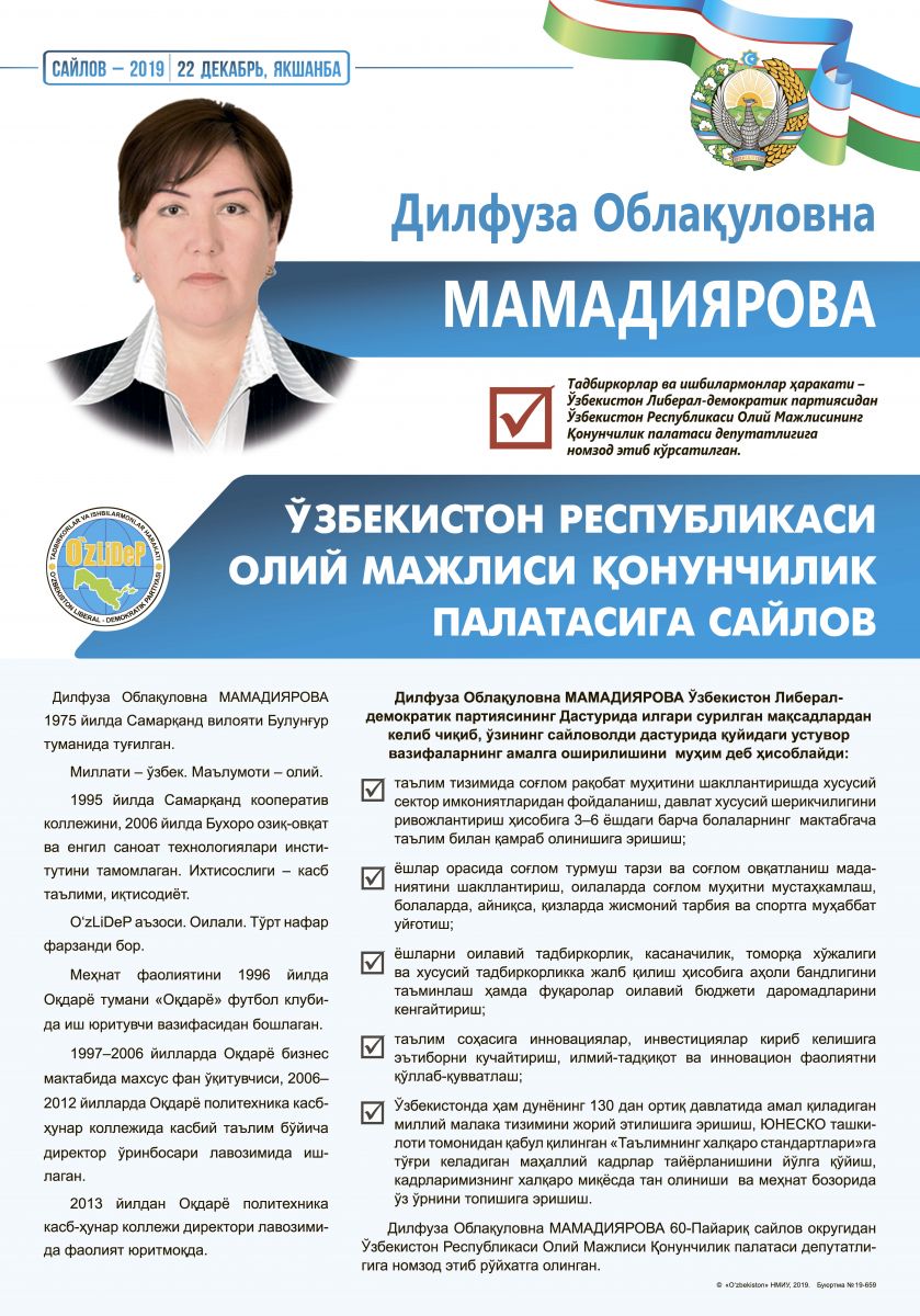 “Ёшлар-келажагимиз” жамғармаси Жомбой туман филиали раҳбари, "Billur - tekstil-group" МЧЖ раҳбари