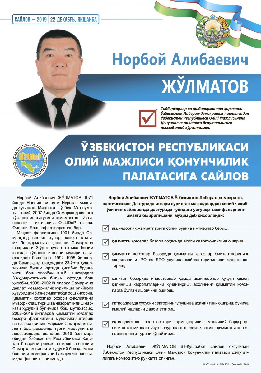 Ўзбекистон Республикаси Олий Мажлиси Қонунчилик палатаси Бюджет ва иқтисодий ислоҳотлар қўмитаси раиси