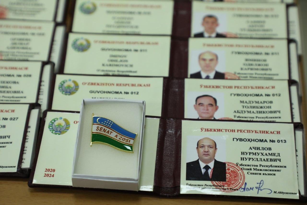 ОЛИЙ МАЖЛИС ҚОНУНЧИЛИК ПАЛАТАСИ ДЕПУТАТЛАРИ ВА СЕНАТИ АЪЗОЛАРИГА ГУВОҲНОМА ВА КЎКРАК НИШОНЛАРИ ТОПШИРИЛДИ (ФОТОЛAВҲAЛAР)