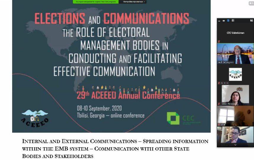 2020 йилнинг 8-10 сентябрь кунлари Грузиянинг Тбилиси шаҳрида Европа сайлов ташкилотчилари мансабдорлари уюшмаси Бош ассемблеясининг (АСЕЕЕО) 29-конференцияси бўлиб ўтди. Мазкур йирик анжуман аввалгиларидан фарқли ўлароқ COVID-19 пандемияси шароитини инобатга олган ҳолда онлайн тарзда ўтказилди. Тадбирда 26 та сайлов органларининг 120 дан ортиқ вакиллари, халқаро экспертлар ва сайлов бўйича етакчи мутахассислари иштирок этишди.